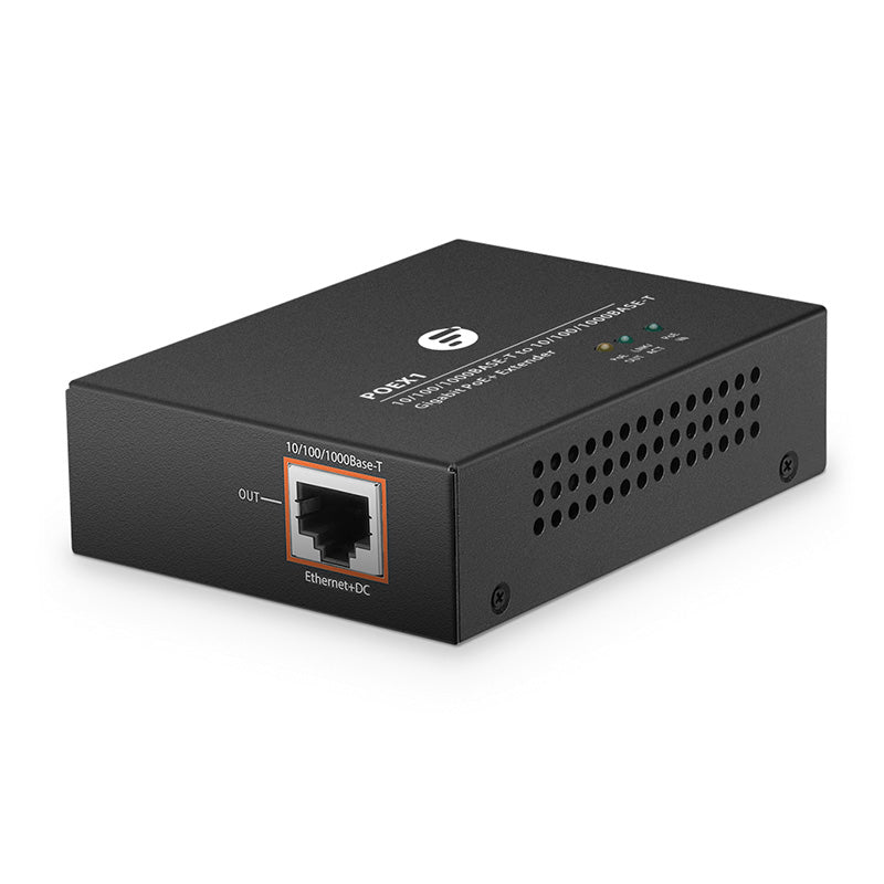 POEX1 is a simple extender which extends both the Gigabit Ethernet Data and IEEE 802.3at/802.3af Power over Ethernet transmission distance over the standard 100m (328 ft.) Cat5/5e/6 UTP cable to 200m, 300m, 400m and the maximum 500m.