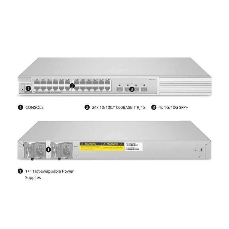 - Ports: 24x 10/100/1000BASE-T RJ45 | 4x 1G/10G SFP+