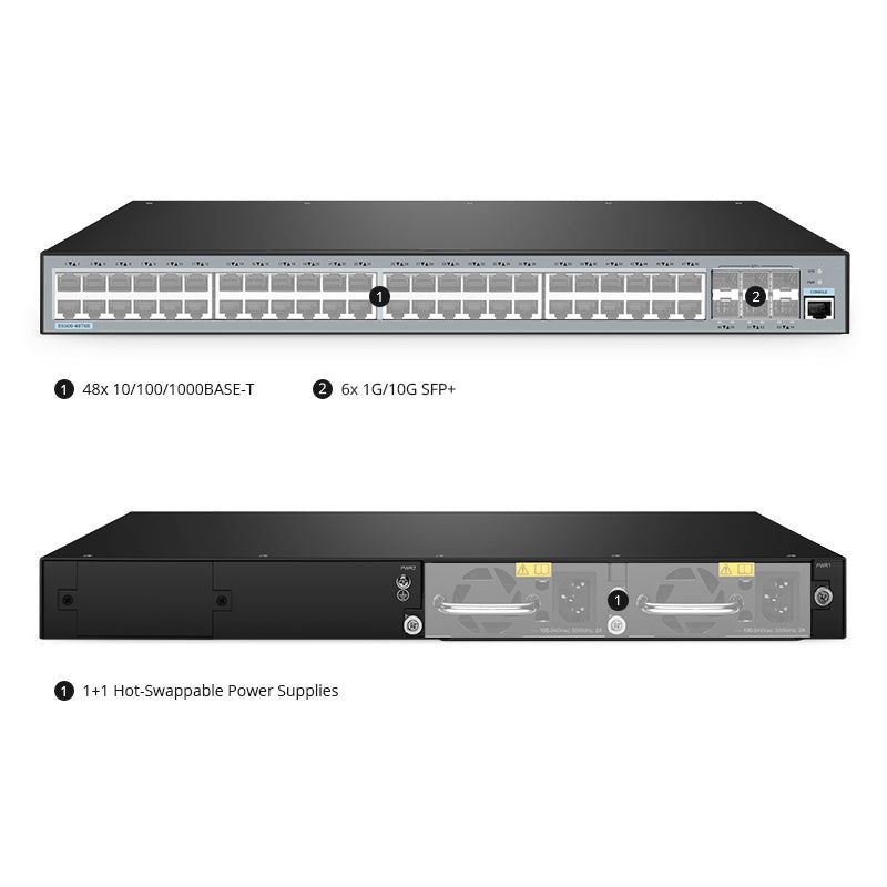 - Ports: 48x 10/100/1000BASE-T; 6x 10G SFP+