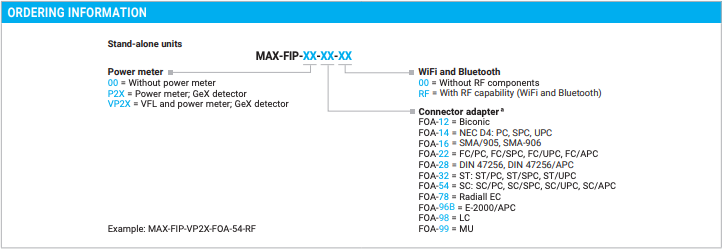 The MAX-FIP kit can also be equipped with a power meter and visual fault locator (plug-and-play options).