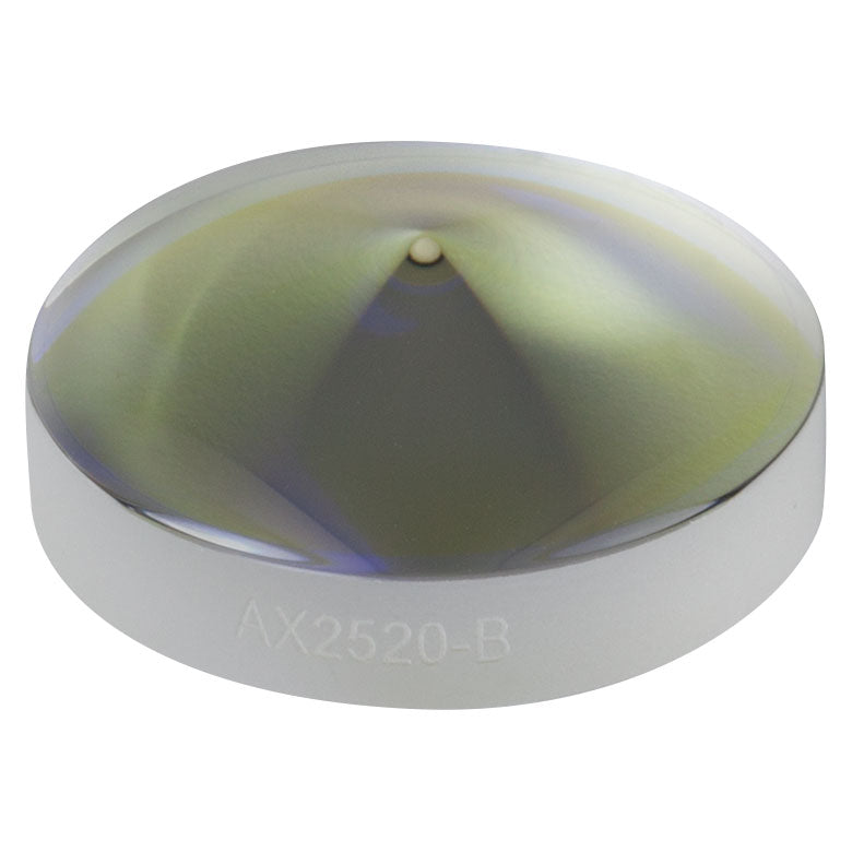 These axicons are AR coated for the 650-1050 nm range making them suitable for many near IR (NIR) applications, such as optical traps and corneal surgeries.
