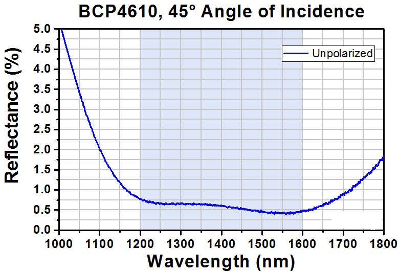 Average Reflectance Over Coating Range  <1.0% at 45° AOI