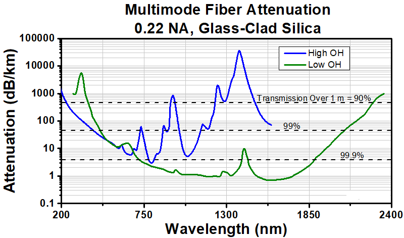 | Wavelength Range | 250 - 1200 nm (High OH) 400 - 2400 nm (Low OH) |
