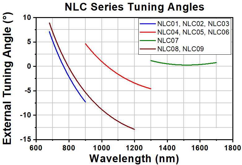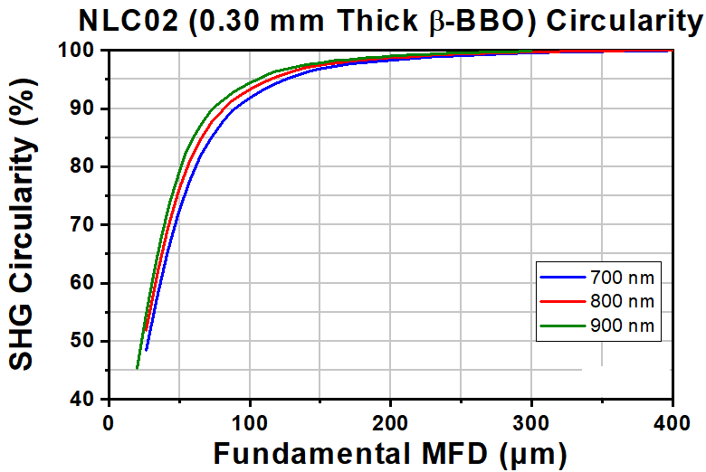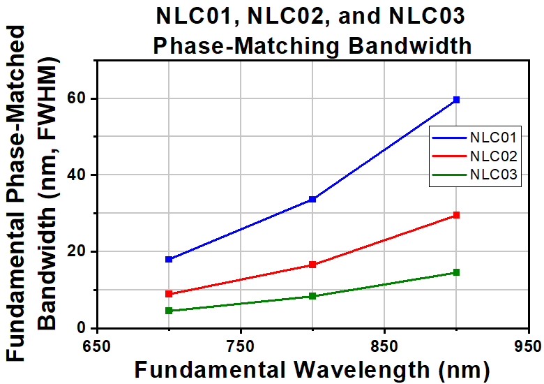 | Phase Matching Bandwidth (FWHM) | 34 nm | 17 nm | 8 nm | |