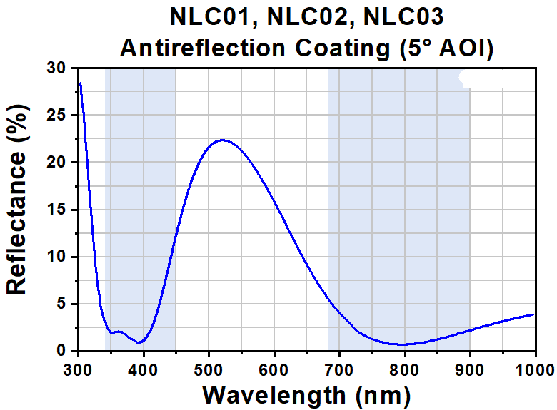 | AR Coating Range | 340 - 450 nm and 680 - 900 nm | |||