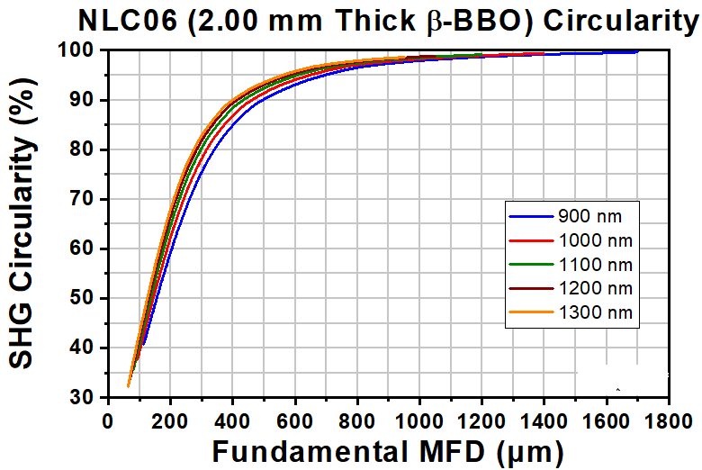 | Phase Matching Bandwidth (FWHM) | 30 nm | 15 nm | 7 nm | |