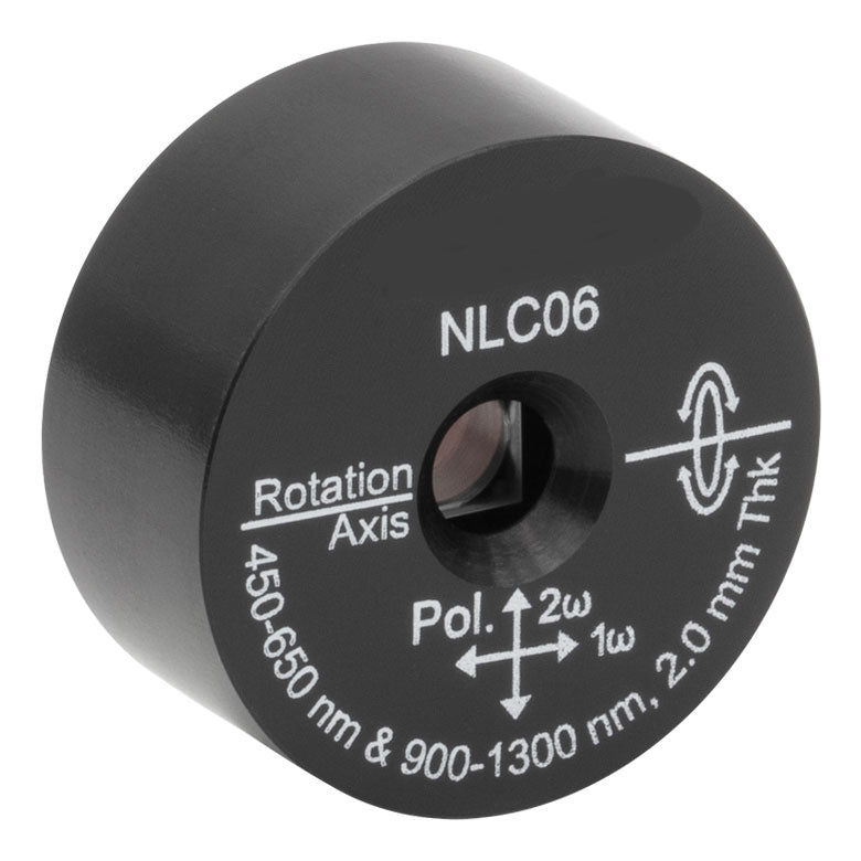T-NLC06 - Ø1" Mounted β-BBO Crystal, 2.00 mm Thick, θ = 23.3°, 900 - 1300 nm Fund., 450 - 650 nm SHG