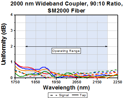 • 2000 nm Fiber Optic Couplers with ±150 nm or ±200 nm Bandwidth