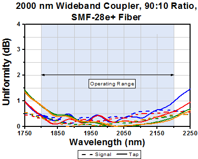 - 2000 nm Fiber Optic Couplers with ±150 nm or ±200 nm Bandwidth