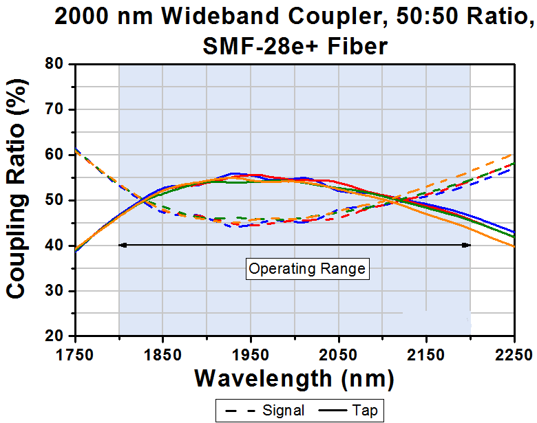 - 2000 nm Fiber Optic Couplers with ±150 nm or ±200 nm Bandwidth