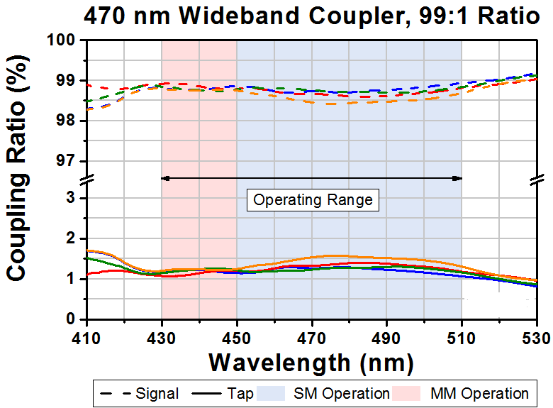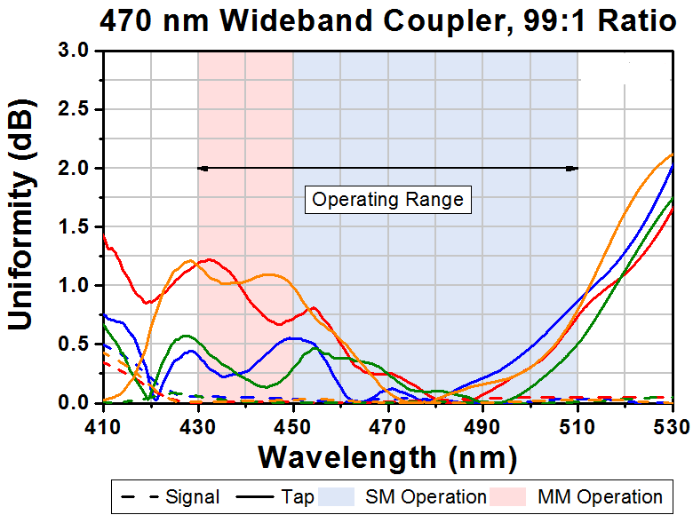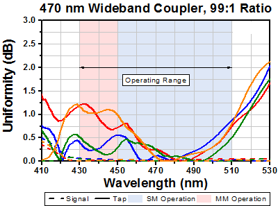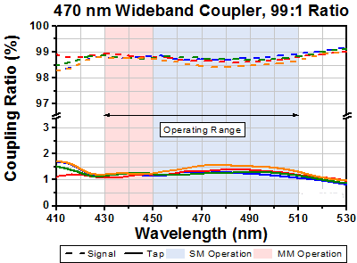 - 470 nm Fiber Optic Couplers with ±40 nm Bandwidth