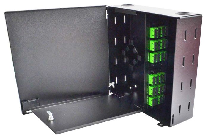 Wall Mount Enclosure 4 Panel Deluxe Loaded with 4 Duplex SC/APC Plates & Splice Trays Black