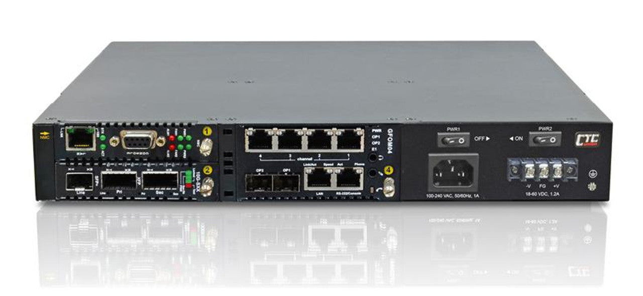 FRM220-CH04-AC - 4 slot fiber chassis with AC power and network management options, rack 19" mountable, 1U