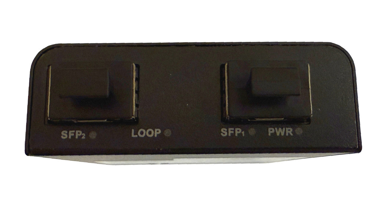 User must choose SAME RATE SFP transceivers for both slots. LED indicators signal the power status of the converter, and FX Link status for each port.