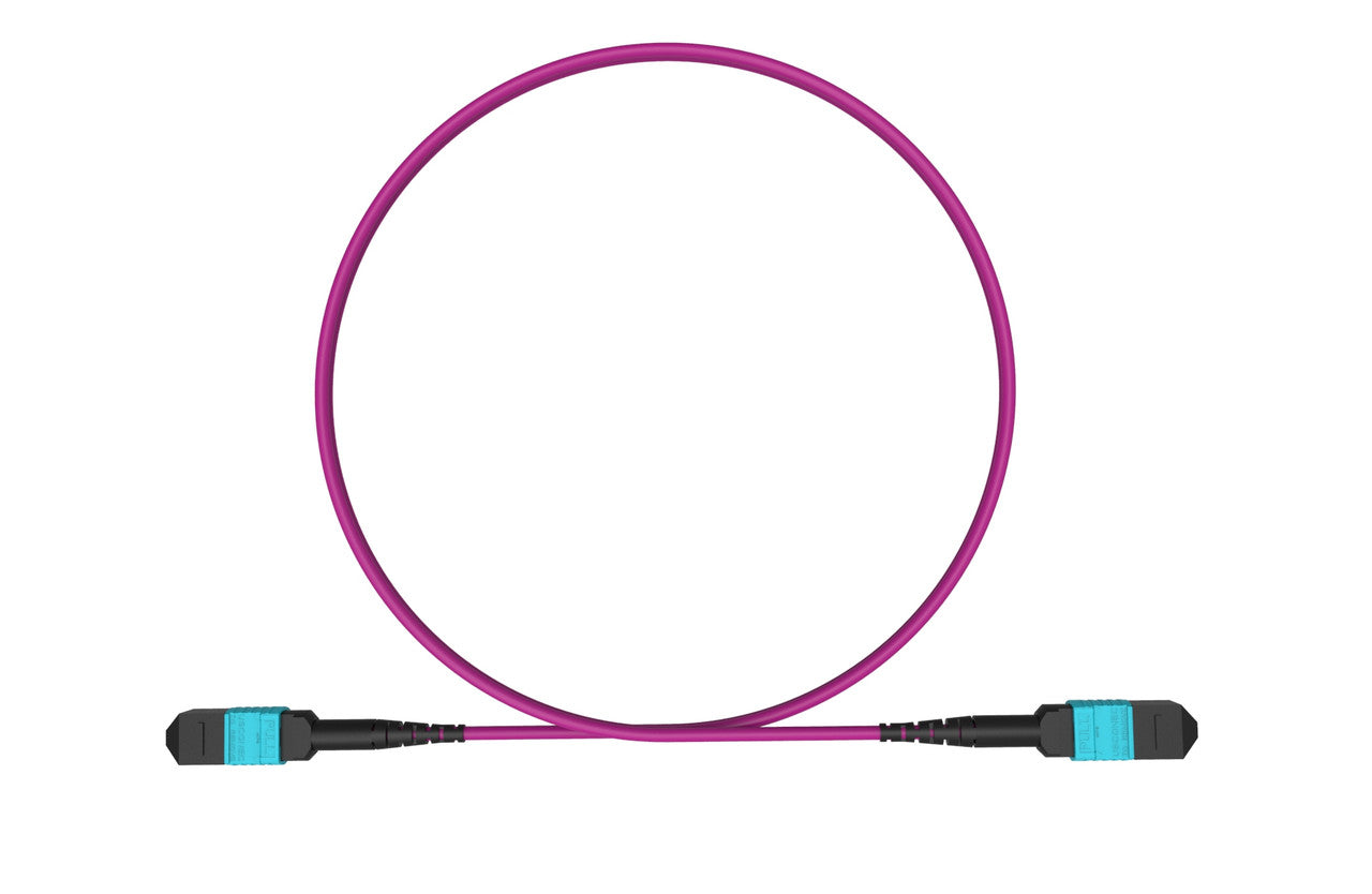 MPO female to MPO female fiber optic patch cord cable, 12 strands, Elite Low IL, OM4, 5m length, B polarity