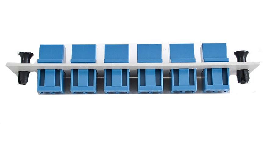 Adapter Plate 6-Pack LC Duplex Singlemode, Square Adapters, Blue, Loaded (12 Fibers), Off-White