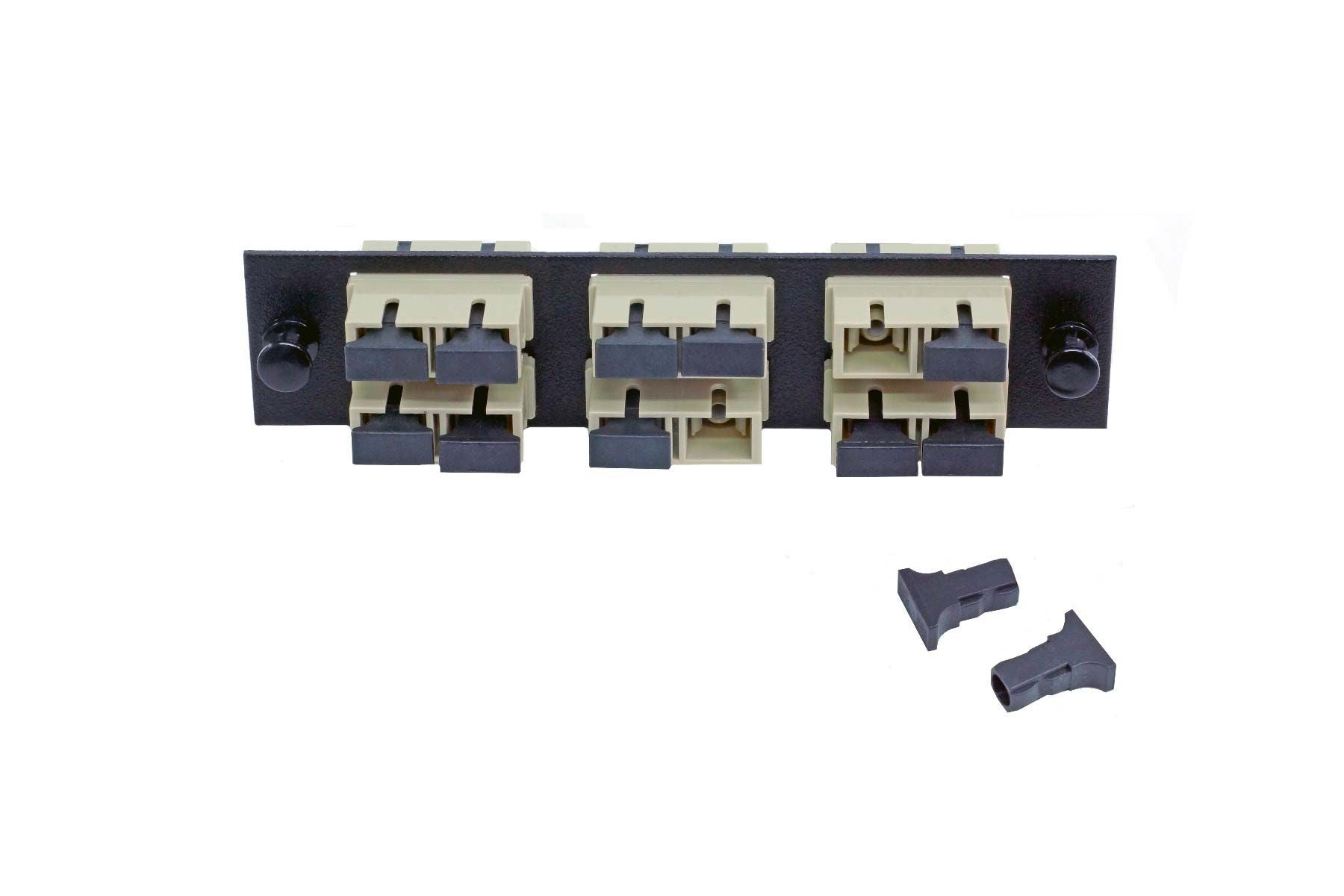 Adapter Plate 6-Pack SC Duplex Multimode Beige Adapters Loaded (12 Fibers) Black