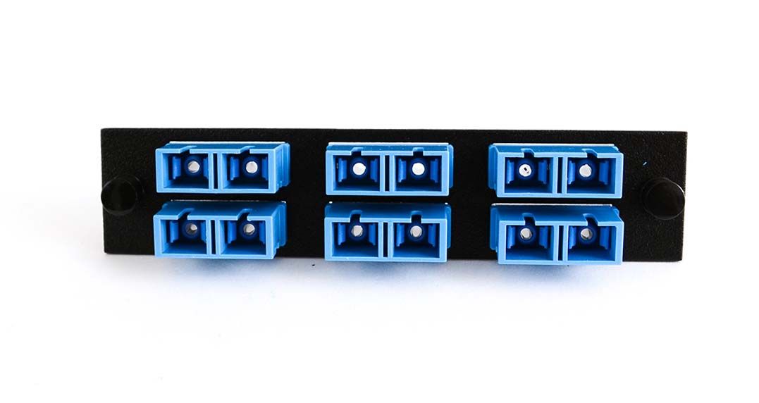 Adapter Plate 6-Pack SC Duplex Singlemode Blue Adapters Loaded (12 Fibers) Black