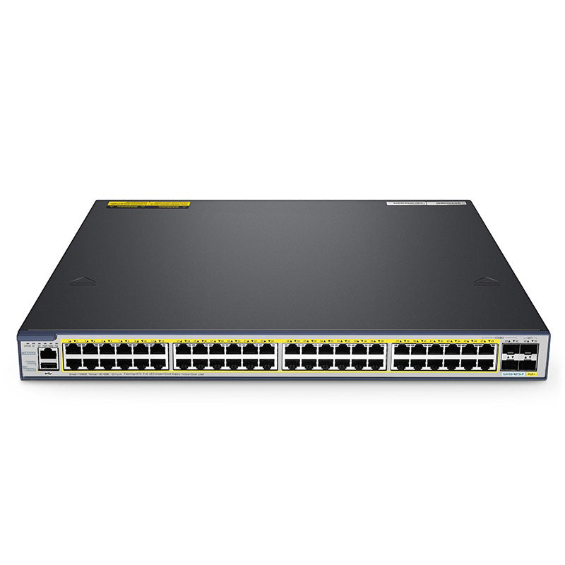 S3410-48TS-P 48-port managed PoE+ switch is equipped with 48x 10/100/1000BASE-T ports, 2x 1Gb RJ45/SFP combo ports and 2x 1/10Gb SFP+ uplinks. 48x RJ45 ports support both IEEE 802.3af PoE and IEEE 802.3at PoE+ (up to 30W per port) for powering attached IP phones, wireless access points, or other standards-compliant PoE and PoE+ end network devices. I