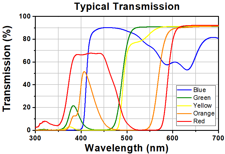- Five Different Fluorescence Spectra Similar to a Variety of Fluorophores (See the Fluorescence Graphs Tab)