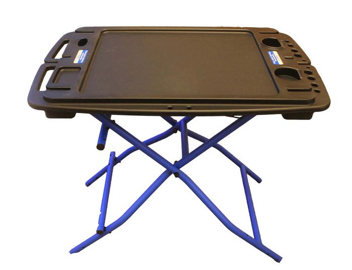 The U-Teck Fiber Optic Splicing Workstation (SKU: F155701) is a professional-grade portable workbench designed specifically for fiber splicing. Offering twice the workspace of standard portable tables, it combines durability with convenience in a compact, foldable design. The workstation includes a floor stand and two stand-off props with adjustable webbing for secure cable management, making it an all-in-one solution for field technicians.